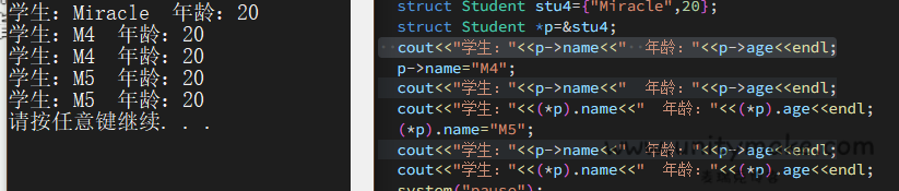 cout<<"学生:"<<stu->name<<endl<<"年龄:"<<(*stu).age<<endl;