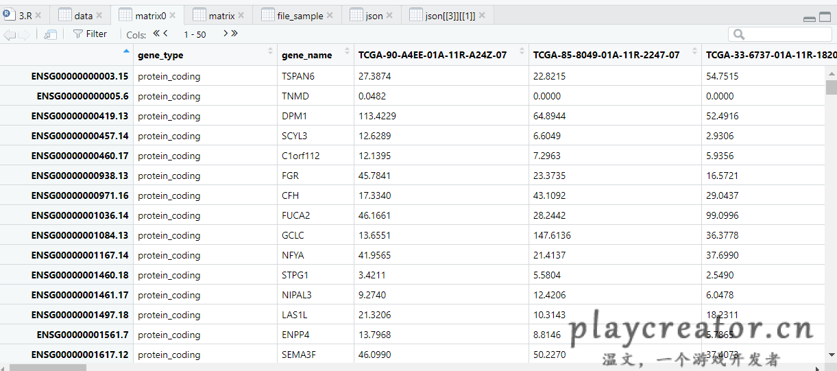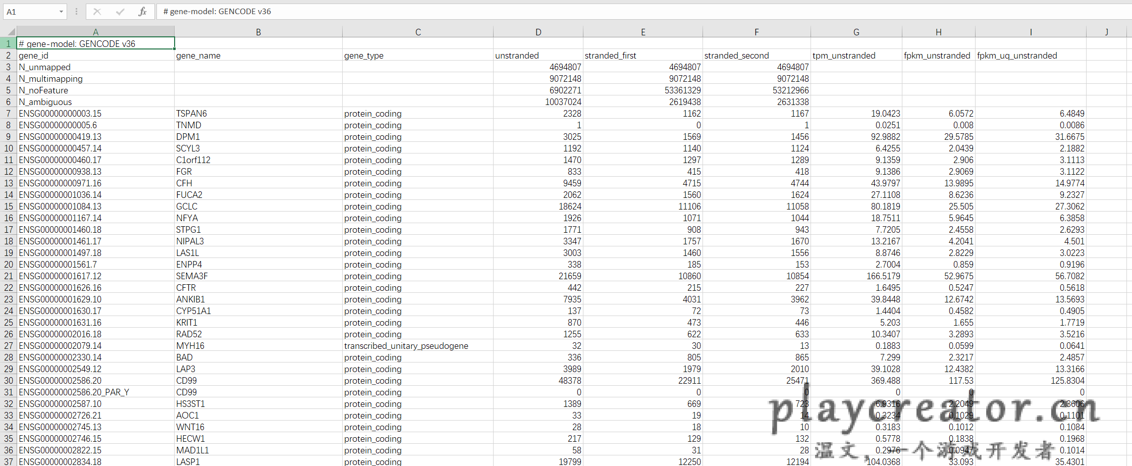 这下面相当是把所有值都变成字符串了,并多添加了两列gene_name、gene_type
