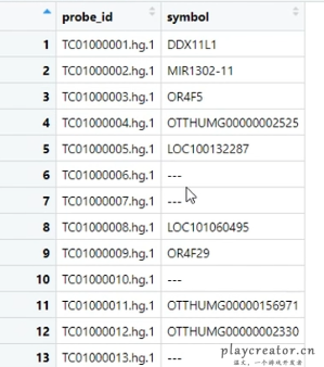 最后,要判断平台文件的ID和矩阵(表达矩阵)中的ID是否匹配。ids=ids[ids$probe_id %in% rownames(dat),] %in%用于判断是否匹配。