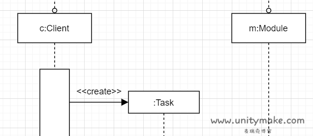 对象也可以在交互过程中某一刻创建,它们的生命线从接收到构造型Create消息时开始。也可以在交互过程中撤销,它们的生命线在接收到构造型的destroy的消息时结束。