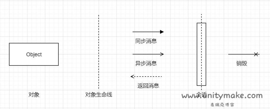 时序图的构成分别有:对象(角色)、生命线、会话、消息(调用(同步)消息、异步消息、返回消息)、销毁。