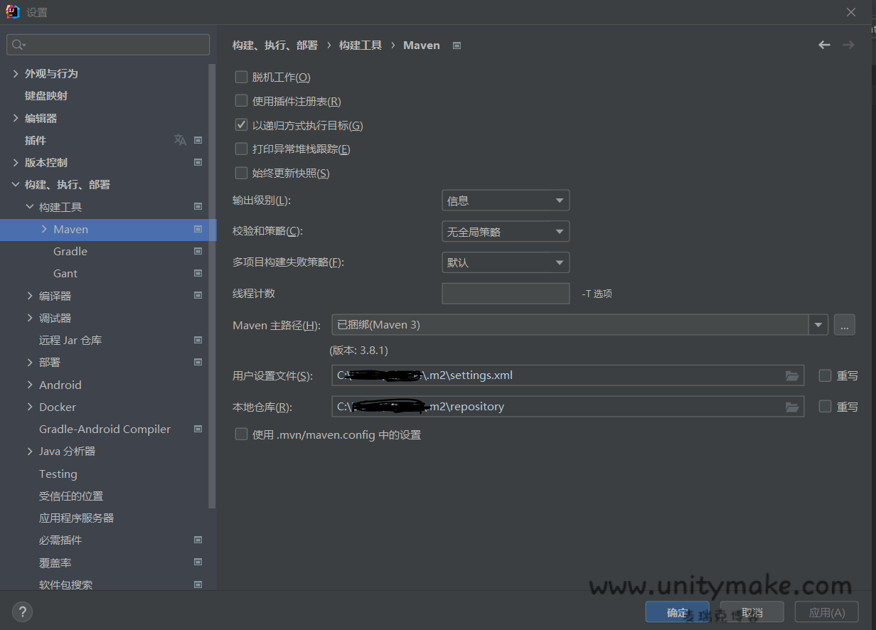 2.左侧菜单栏 选择构建、执行、部署菜单项 找到maven。