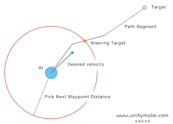 在后面发现问题出在AIPath的pickNextWaypointDist属性上,该属性规定了agent可以找到一个以它为半径的圆在路径上的一交点,