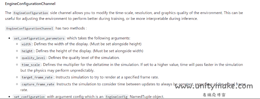 例如官方api中的EngineConfigurationChannel、EnvironmentParameters就是侧通道: