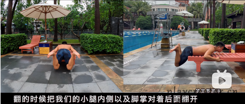 3.没踢到水,踢水不够用力。脚踝外翻,脚掌勾起,向下向后用力踢。
