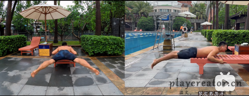 向前伸手和抬头、低头、收腿过程都带有阻力。所以要尽可能同时完成,减少阻力