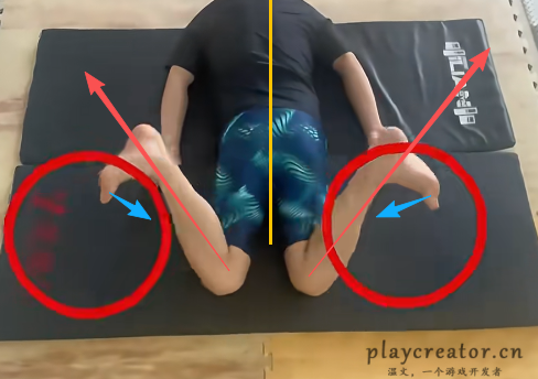 收小腿,与大腿成45度,控制好大腿,大腿幅度不要过大。