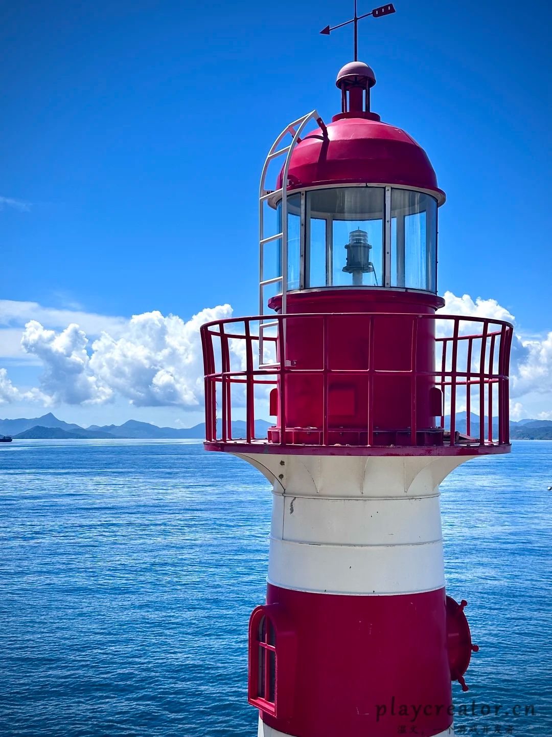 红白灯塔与玻璃海相映
