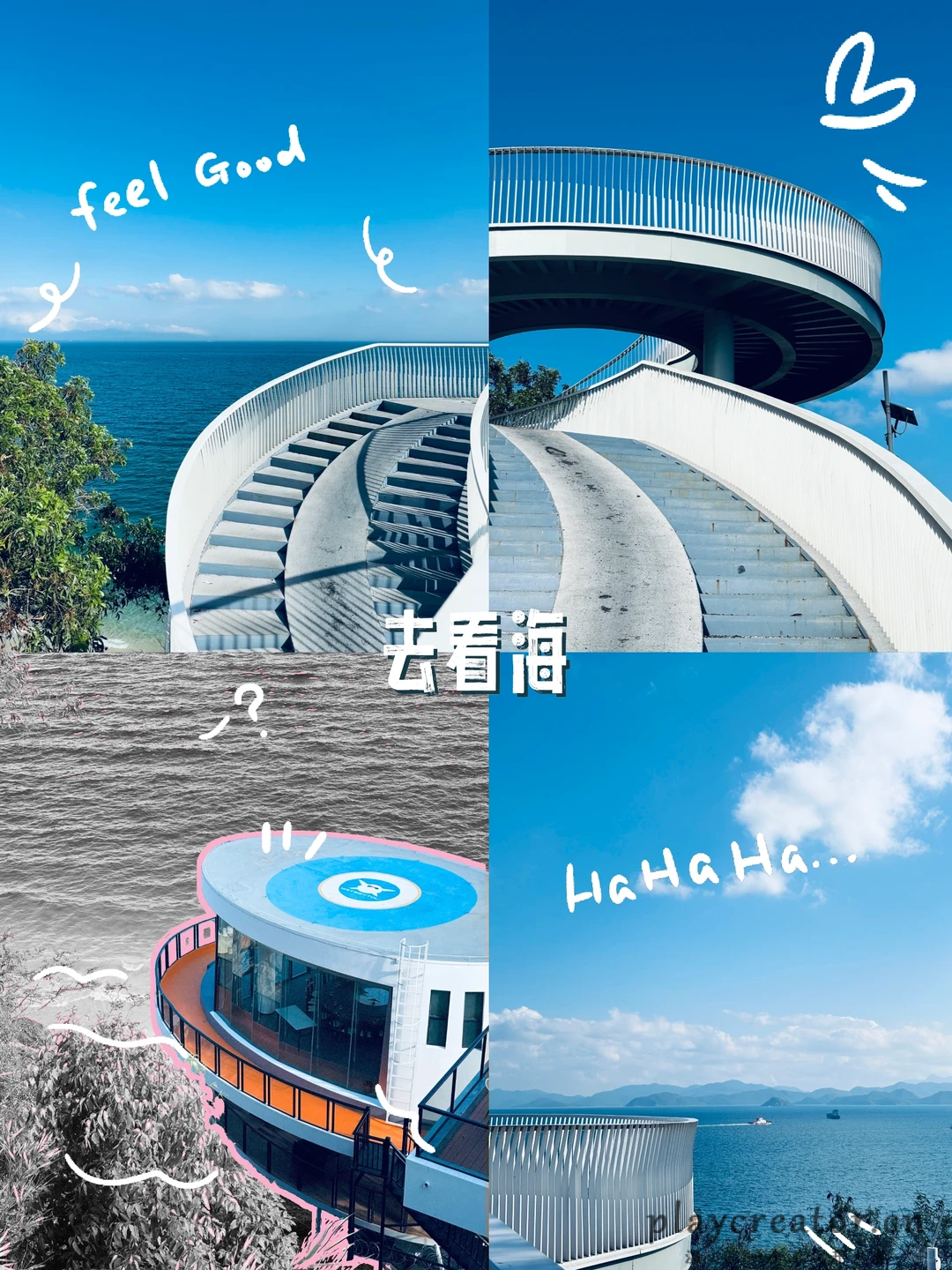 360°无遮挡海景,旋转楼梯网红机位,可俯瞰蔚蓝大海,欣赏山海风光,时间充裕的,傍晚时分也可返回看日落