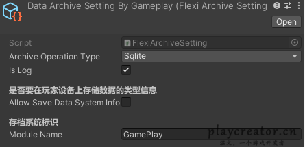 每一个存档系统都必须有且只有一个唯一的FlexiArchiveSetting配置。因此,每当你定义一个新的存档系统类型时,你应该同时创建一份FlexiArchiveSetting配置